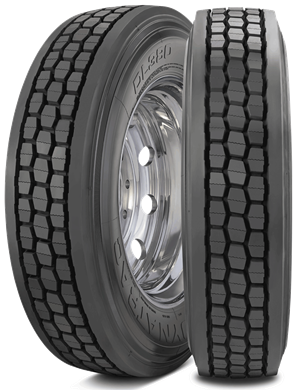 - Cut and chip tread compound and solid shoulder ribs resist wear inherent in high-scrub application.